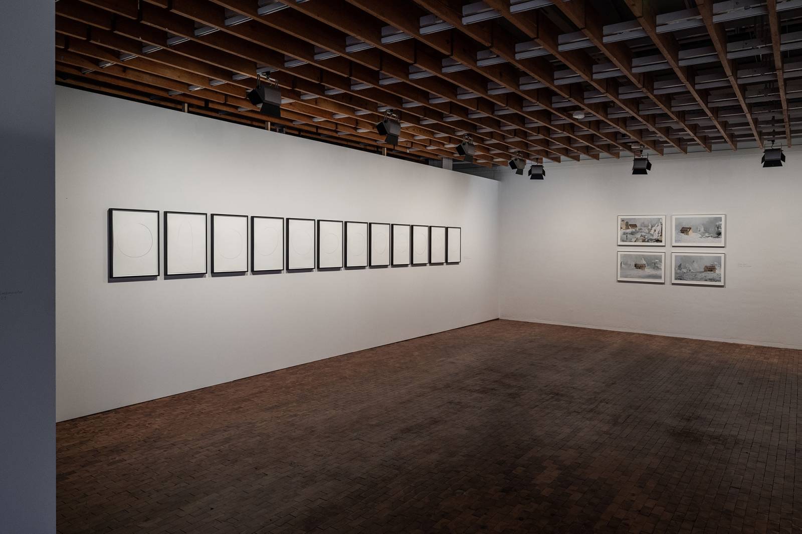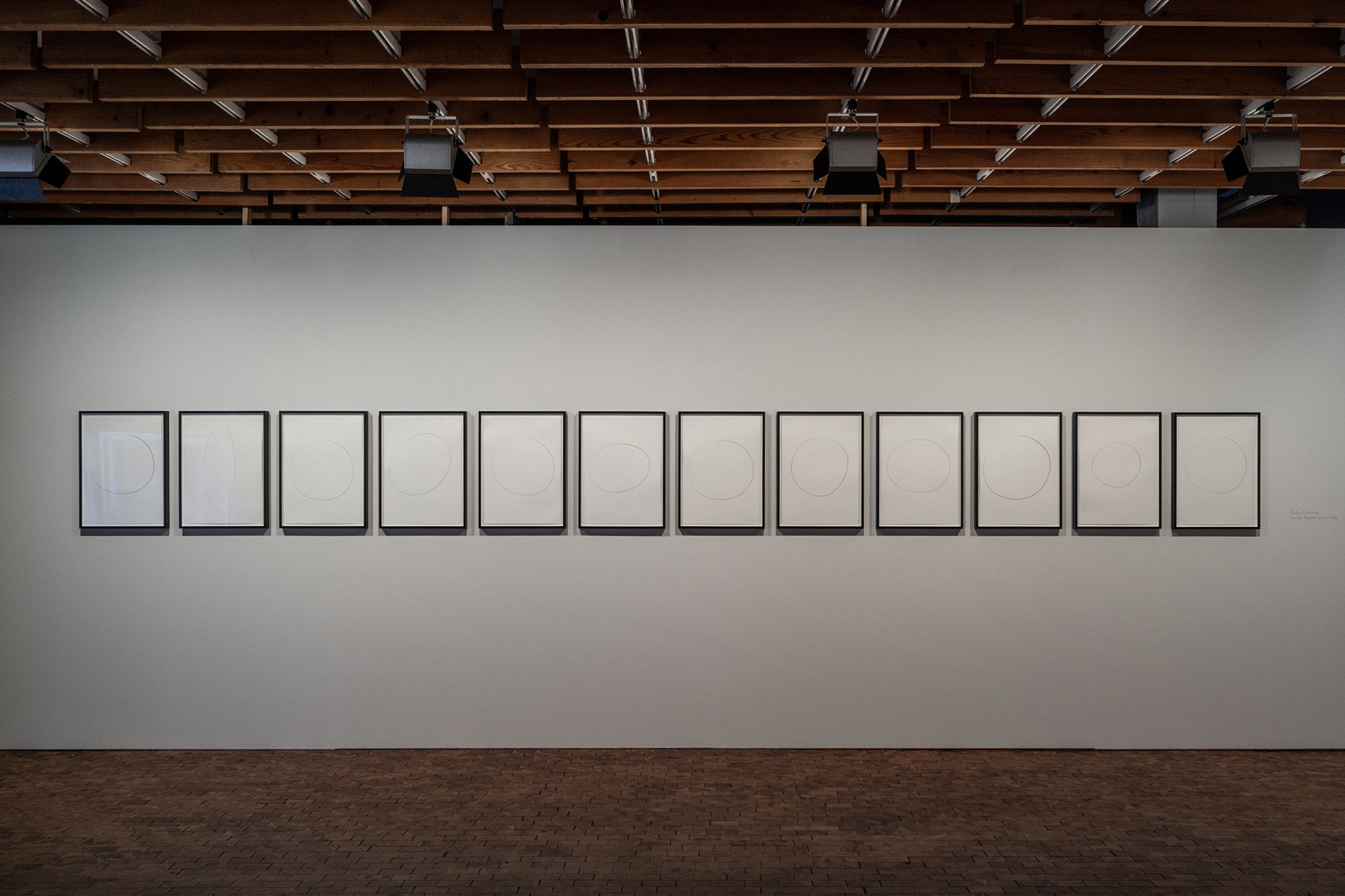 Almost Perfect Circles ist Teil einer Reihe einzigartiger Versuche des Künstlers, einen perfekten Kreis freihändig zu umranden. Die handgezeichneten Linien reichen von dem Kreis ähnlichen Formen bis hin zu länglichen Ellipsen. Die einzelnen Linien verjüngen sich von dick zu dünn und zeugen so vom unterschiedlichen Druck der Künstlerhand auf. Die Zeichnungen zelebrieren das Unvollkommene, Unvollständige und Ungewisse und evozieren Minimalismus, Naturphänomene und meditative Praxis. Der Kreis, der in Eliassons Werken immer wieder auftaucht – von eng skalierten Zeichnungen und Aquarellen bis hin zu großformatigen, ortsspezifischen Installationen – bezieht sich auf buddhistische Interpretationen von Erleuchtung, Stärke, Eleganz und dem Universum.