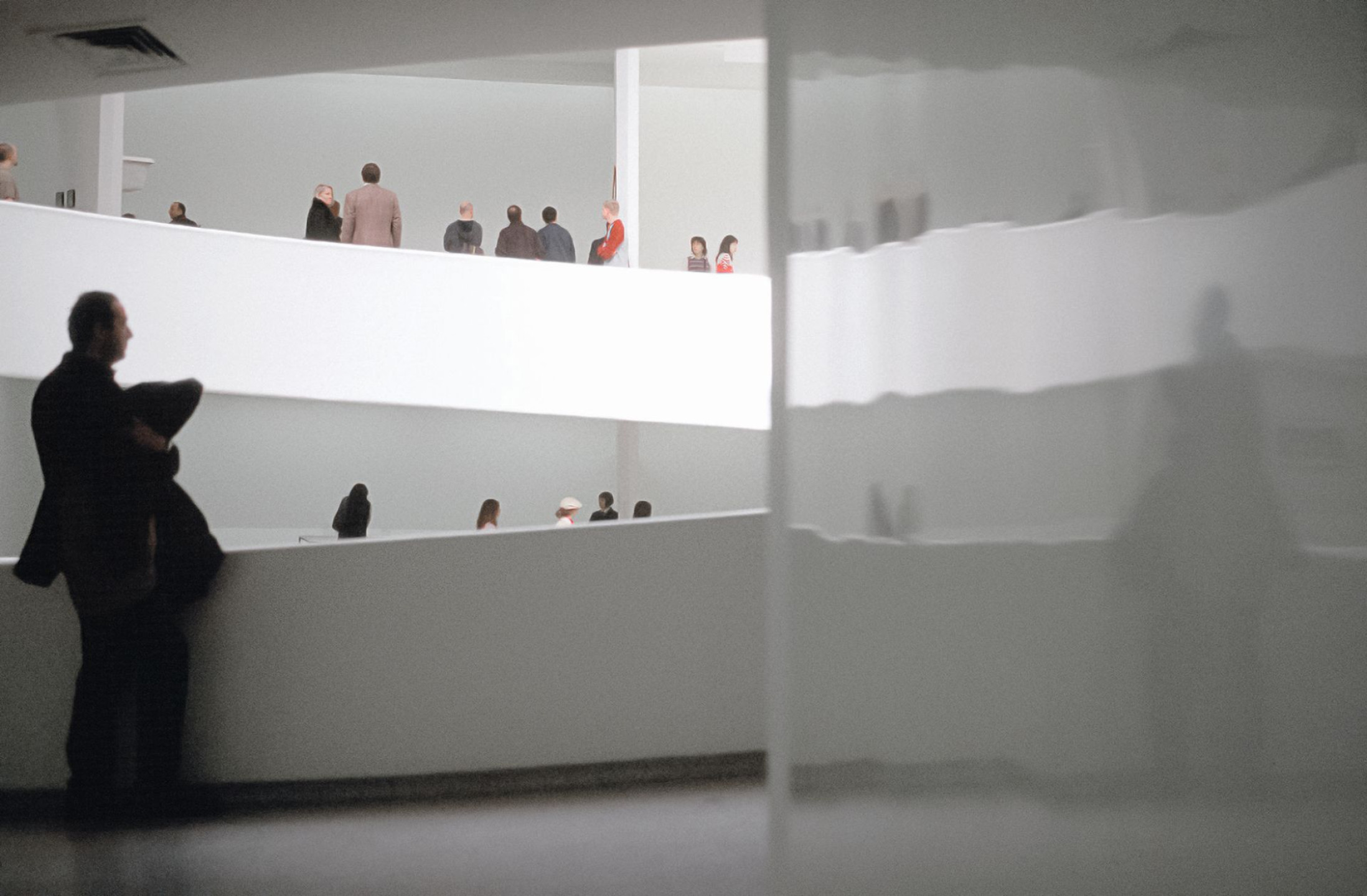 Die Diaprojektion Notes on Duration zitiert Lichtsilhouetten von Gebäudeöffnungen wie Fenstern und Türen, die sich auf Wänden und Böden von Innenräumen ...